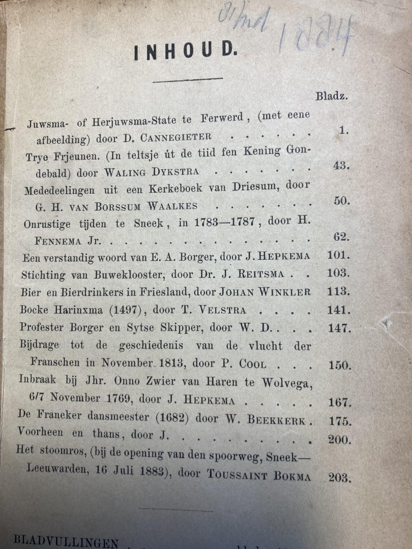 Friesche Volksalmanak voor het schrikkeljaar 1884